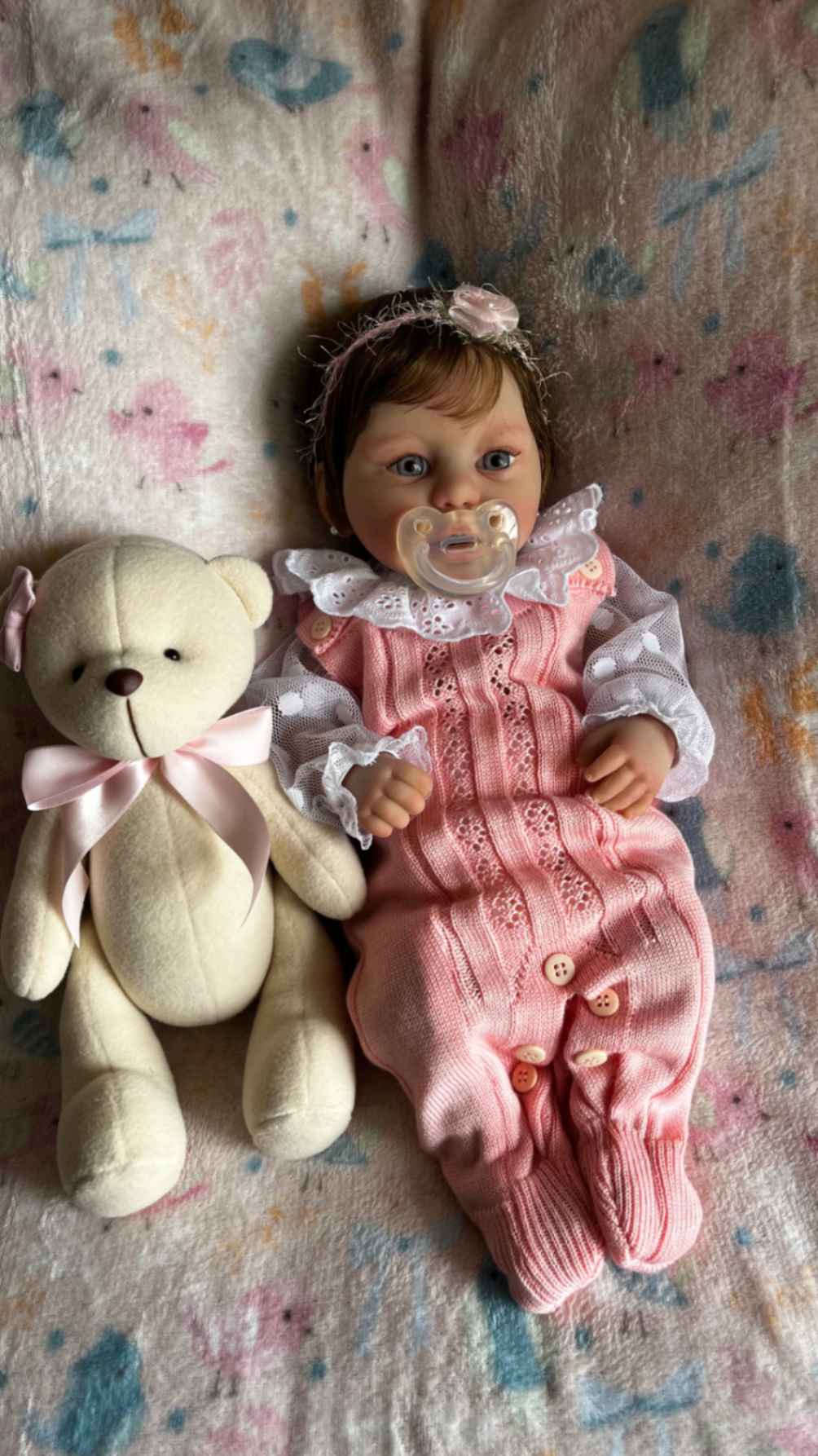 💕✨ Kylin é uma bebezinha em tamanho prematuro inteira em silicone molinho e macio! Possui sistema urinário (mama e faz xixi 💦🍼), tornando cada troquinha de fraldas uma experiência muito real! Seu cabelinho é delicado como de um bebê real, implantado manualmente fio a fio! Sua boquinha é aberta e ela utiliza uma chupetinha feita em silicone em tamanho proporcional ao seu rostinho! Ela pesa 2,6 kg e mede 46 cm, sendo um tamanho ideal para crianças!